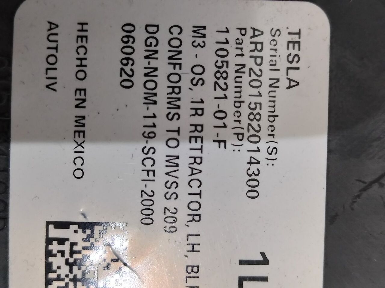 Ремінь безпеки передній лівий (водійський) TESLA MODEL 3 М 222